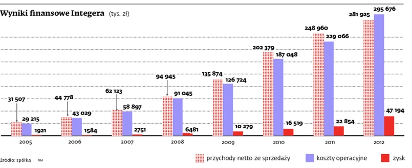>>> Czytaj też: Zysk netto Integera wzrósł do 53,12 mln zł w 2012 r.