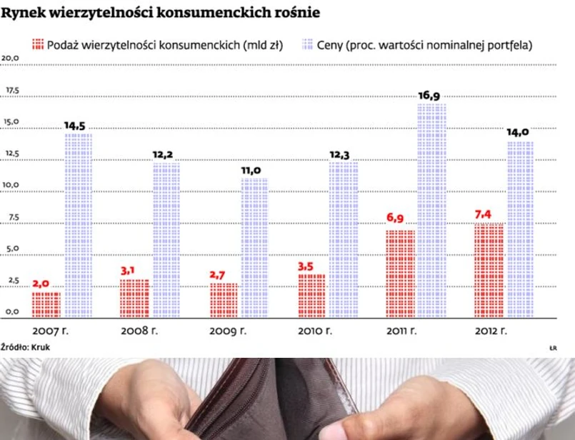 Anna Paczuska, prezes EOS KSI Polska, mówi, że rynek wierzytelności rośnie wtedy, gdy zwiększa się akcja kredytowa. Tymczasem po wybuchu kryzysu i zaostrzeniu polityki kredytowej przez banki wartość udzielanych kredytów systematycznie spada, zwłaszcza w segmencie kredytów konsumpcyjnych. – Można więc zakładać, że liczba wierzytelności oferowanych na sprzedaż również odzwierciedli ten trend – ocenia Paczuska. Według niej rokiem próby będzie 2014, a wiele zależy od strategii, jaką przyjmą banki. Podaż mogłaby wzrosnąć, jeśli banki zaczęłyby sprzedawać swoje wierzytelności hipoteczne. Na razie tego nie robią.