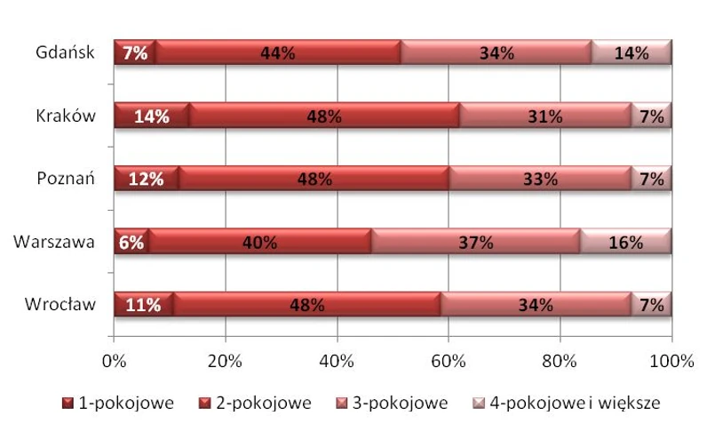Wiele zjawisk nie zmienia się w czasie a ewentualne obserwowane zmiany zachodzą powoli. Jednym z takich zjawisk są preferencje w zakresie wielkości mieszkań. Na największych lokalnych rynkach kraju mieszkania dwupokojowe pozostają podstawowym produktem w ofercie deweloperów.