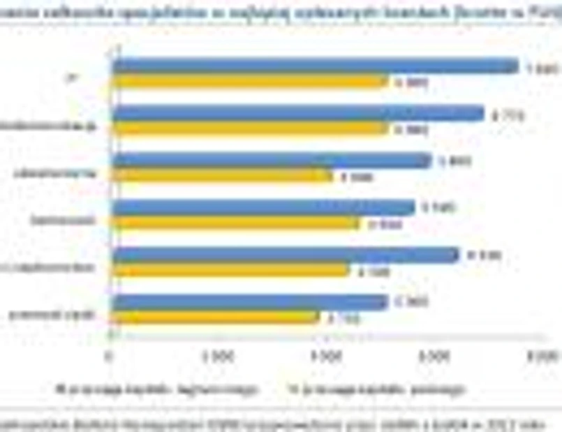 Wśród sześciu najlepiej opłacanych branż znalazły się między innymi IT, ubezpieczenia oraz przemysł ciężki. Istniały tam jednak dość duże dysproporcje pomiędzy stawkami wynagrodzeń oferowanymi przez firmy z polskim i zagranicznym kapitałem. Na przykład mediana płac pracowników telekomunikacji w rodzimych spółkach i organizacjach wyniosła 5 000 zł i była o ponad 26 proc. niższa niż odnotowana w przedsiębiorstwach zagranicznych (6 775 zł).