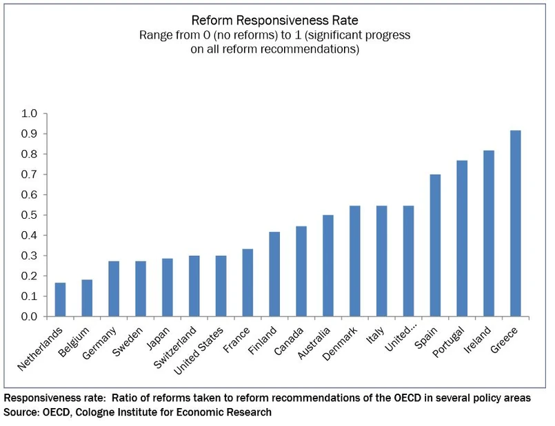 Choć w wielu dziedzinach Grecja ma jeszcze wiele do zrobienia, to bez wątpienia trzeba uznać postęp Aten w kwestii konsolidacji fiskalnej, reform rynku pracy – pisze Juergen Matthes. Wobec tego można mieć nadzieję, że w perspektywie średnioterminowej reformy strukturalne poprawią wskaźniki wzrostu gospodarczego, efektywności siły roboczej oraz zatrudnienia, co pokazuje doświadczenie innych krajów uprzemysłowionych we wprowadzaniu reform