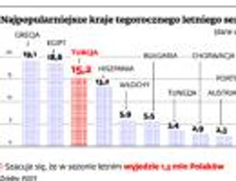 Turcja od lat utrzymuje się w czołówce najpopularniejszych kierunków turystycznych. W tym roku z udziałem na poziomie 15,2 proc. jest na trzecim miejscu wśród najlepiej sprzedających się miejsc w biurach podróży – wynika z danych Polskiego Związku Organizatorów Turystyki. To oznacza, że na wakacje do Turcji wybiera się 180 tys. osób. Co ciekawe, Antalya to najpopularniejszy kurort wypoczynkowy polskich turystów. Wyprzedza egipskie Hurghadę i Szarm el-Szejk, które zajmują kolejne miejsca.