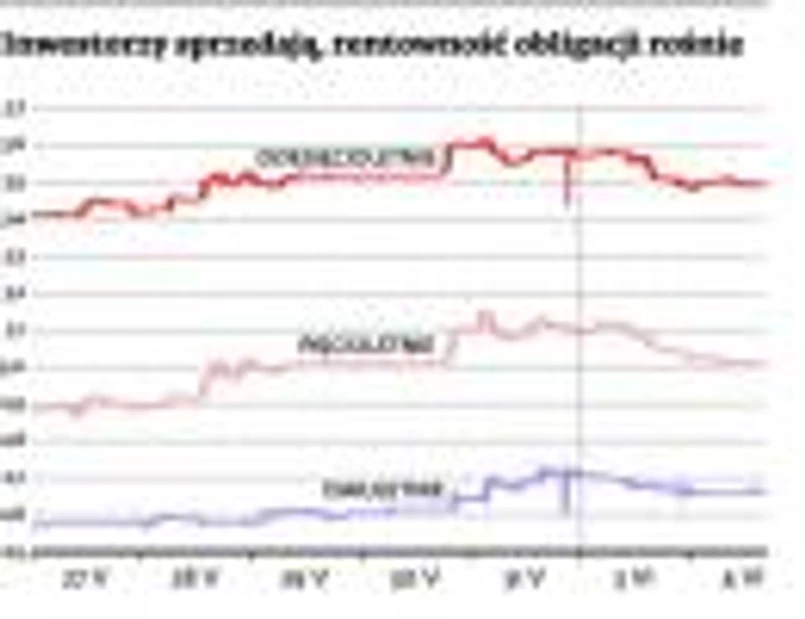 Ostatni długi weekend był bardzo nerwowy dla inwestorów z rynku długu. Rentowność polskich obligacji skoczyła w ciągu trzech dni o 20–25 pkt bazowych. W przypadku dziesięcioletnich papierów urosła do 3,60 proc. – poziomu nienotowanego od początku kwietnia. Wzrosła też dochodowość dwu- i pięciolatek, a złoty wyraźnie się osłabił.