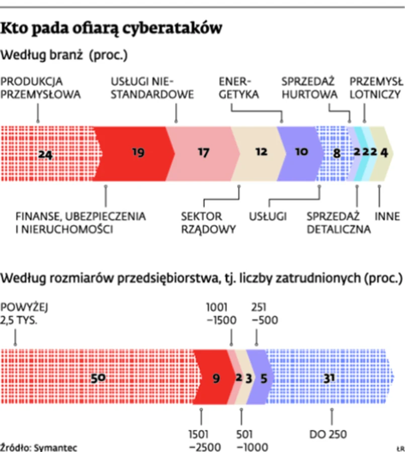 Jak wynika z najnowszego raportu firmy Symantec, w 2012 r. trzykrotnie wzrosła liczba ataków internetowych na małe i średnie firmy. Ataki te w ogromnej części tworzone są specjalnie po to, aby wykradać własność intelektualną, i coraz częściej dotyczą też sektora przemysłowego oraz małych firm (to aż jedna trzecia wszystkich przypadków). Te są nie tylko atrakcyjnym celem same w sobie, lecz także umożliwiają cyberprzestępcom dotarcie do większych przedsiębiorstw będących elementem łańcucha dostaw. Tę tendencję potwierdza badanie Ponemon Institute przygotowane przez firmę Solera – wynika z niego, że w ciągu ostatnich dwóch lat firmy z całego świata, zarówno te duże, jak i bardzo małe, zaczęły masowo padać ofiarami cyberprzestępców. A jedynie dwie piąte firm przyznaje, że ma odpowiednie narzędzia, personel oraz środki finansowe, by takie zagrożenie zniwelować. Co więcej, firmy orientują się, że zostały zaatakowane średnio po upływie niemal trzech miesięcy, a następnie potrzebują kolejnych czterech miesięcy (123 dni), aby naprawić szkodę.