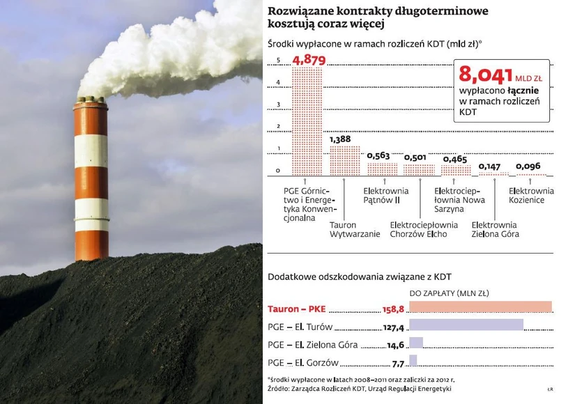 Po wejściu Polski do UE kontrakty trzeba było anulować, bo Komisja Europejska uznała je za niedozwoloną pomoc. Jednak spółki energetyczne musiały nadal obsługiwać kredyty. Aby to im umożliwić, powstała ustawa o KDT, na mocy których energetykom należy się rekompensata za utracone po rozwiązaniu umów przychody. Wysokość tej rekompensaty uzależniona jest m.in. od wielkości hurtowej sprzedaży prądu na rynku konkurencyjnym (jak dotąd do elektrowni trafiło już ponad 8 mld zł, a energetyka spiera się o dalsze 2 mld zł).