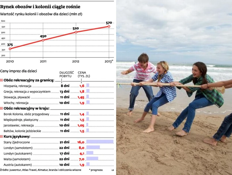 Polska turystyka wyjazdowa od czterech lat jest pogrążona w kryzysie – wynika z raportu Polskiego Związku Organizatorów Turystyki. Tymczasem coraz lepiej idą oferty dla dzieci. W ub.r. ich sprzedaż wzrosła o ok. 15 proc. W tym roku też jest nieźle, bo firmy liczą na 10-proc. wzrost. I spodziewają się, że na zorganizowane przez nie obozy i kolonie wyjedzie 250–260 tys. najmłodszych. To – według szacunków branży – o kilkanaście tysięcy obozowiczów i kolonistów więcej niż przed rokiem.