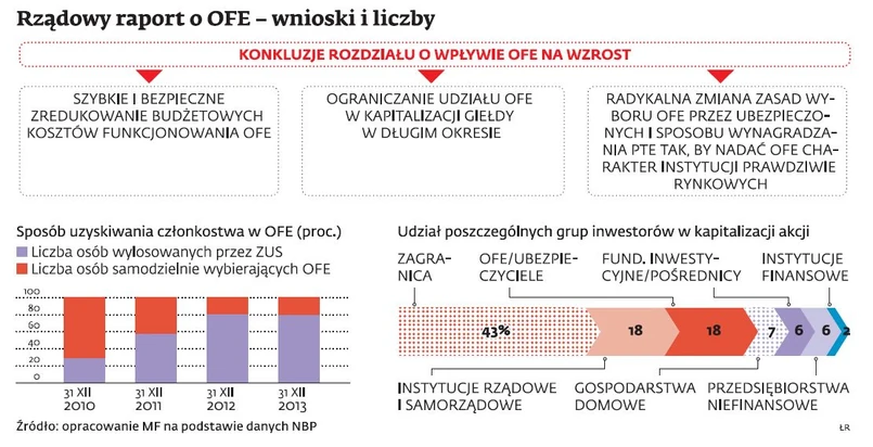 W tej części raportu nie ma wyliczeń pokazujących wpływ OFE na wzrost. – To jest publicystyka. To jest wstyd, brak podejścia makroekonomicznego – ostro ocenia rządowy dokument Janusz Jankowiak, ekonomista Polskiej Rady Biznesu. Brak wyliczeń wytyka także Jakub Borowski, główny ekonomista Credit Agricole. – Raport w tym kształcie nie doprowadzi do postępu w dyskusji na temat OFE. Nie zawiera szacunku długookresowego wpływu OFE na wzrost przy alternatywnych założeniach – podkreśla Borowski. Chodzi m.in. o pokazanie, co by się działo w gospodarce, gdyby zamiast finansować OFE, obniżono podatki lub przeznaczono te same pieniądze na rozwój infrastruktury.