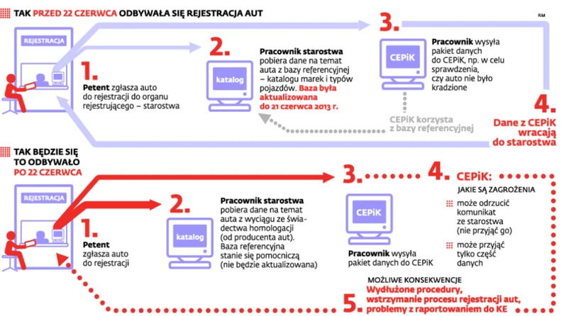 W efekcie urzędnik starostwa, który nie otrzymuje odpowiedzi z CEPiK, nie będzie mieć pewności, czy wydać kierowcy dowód rejestracyjny.