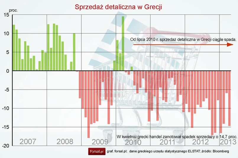 Miesiąc wcześniej sprzedaż detaliczna w Grecji spadła o 5,9 proc.