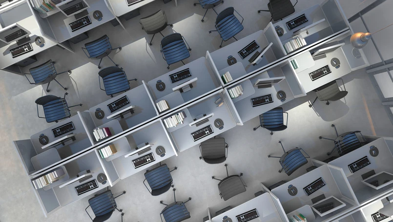 Obecnie ponad 70 proc. pracowników pracuje w biurach typu open space, zaś obszar powierzchni na jednego pracownika spadł z 500 w 1970 roku do 200 metrów kwadratowych w 2010 roku. Pod wieloma względami ewolucja ta oznacza jednak regres.