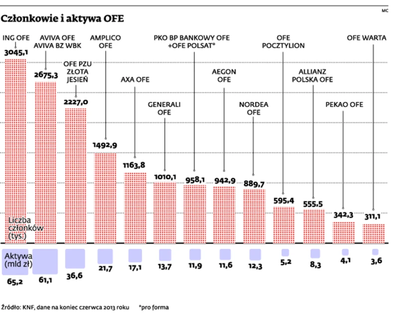 Jeśli założyć, że OFE wraz z odpływem klientów straciłyby dwie trzecie aktywów, majątek żadnego z nich – jak można wnosić z najnowszych danych – nie powinien spaść poniżej 1 mld zł. – Gdyby podmioty dysponujące takimi aktywami miały kłopot z funkcjonowaniem, świadczyłoby to o daleko idącej patologii całego systemu – uważa Ruciński.