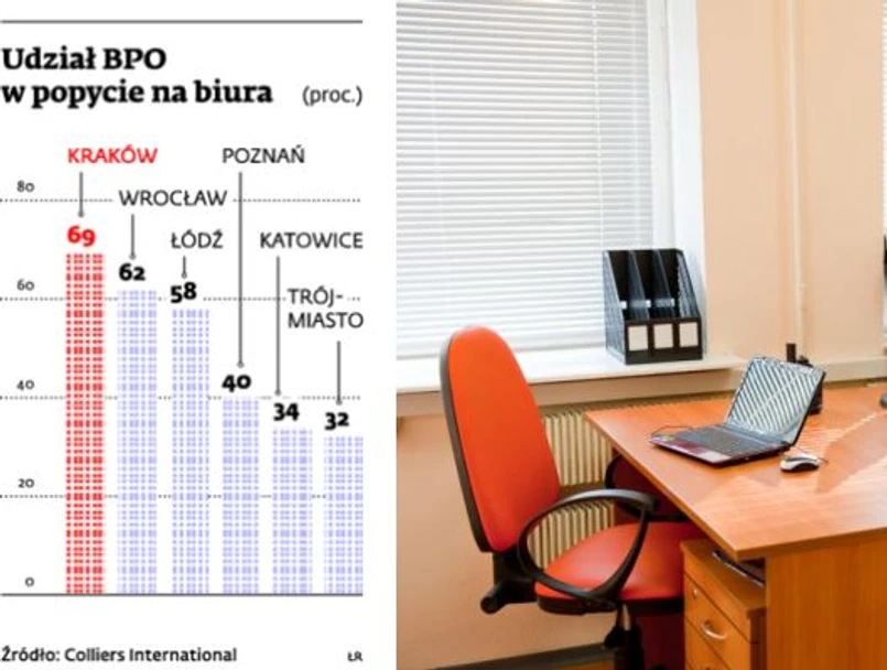 Biorąc pod uwagę, że w Polsce dostępne jest ponad 6,5 mln mkw. nowoczesnych biur, na sektor ten przypada ponad 15 proc. tego typu powierzchni. Firmy rozwijające takie usługi szukają lokalizacji tanich, ale najchętniej w ośrodkach akademickich, gdzie najłatwiej o dużą liczbę dobrze wykwalifikowanych pracowników. Najbardziej popularna lokalizacja w Polsce to Kraków, gdzie dla tego segmentu pracuje już ponad 25 tys. osób.