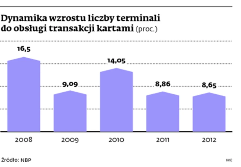 Przypomnijmy, że w 2010 r. Visa uruchomiła program dopłat do instalacji terminali płatniczych, na który banki miały wykładać 50 mln zł co roku aż do 2015 r. Dzięki temu miało przybywać ponad 41 tys. terminali rocznie. Wkrótce MasterCard wystartował z Innovation for Poland i nałożył na wszystkich agentów rozliczeniowych opłatę w wysokości 0,025 proc. wartości transakcji kartami. KAR szacuje, że agenci musieli przeznaczyć na ten cel 24,5 mln zł w 2011 r. oraz 28 mln zł w ubr. „Kwota dofinansowania w ramach programu >>Kartą Visa zapłacisz wszędzie<< została w praktyce pomniejszona o koszty związane z programem I4P” – napisano w raporcie. W związku z tym spadła również możliwość finansowania zakupu i instalacji nowych terminali z 41 do 21 tys. rocznie.