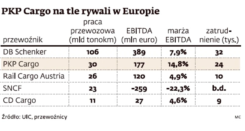 – PKP Cargo wpisują się w grono spółek cyklicznych, czyli reagujących na zmiany sytuacji gospodarczej. To ciekawa opcja dla inwestorów, którzy angażują się w akcje mogące skorzystać na wzroście gospodarczym. PKP Cargo są poza tym jedynym dużym graczem na tle raczej rozdrobnionego rynku, więc mają szansę na zwiększanie udziałów przez konsolidację – przewiduje. Analitycy zwracają uwagę, że PKP Cargo nie tylko nie mają odpowiednika na GPW, ale będą też pierwszą spółką z tej branży w Europie notowaną na giełdzie. Taki kolos, znaczący dla indeksów giełdowych, zawsze jest chętnie kupowany przez inwestorów dbających o dywersyfikację portfela. Mocne strony oferty? Według raportu AT Kearney rynek cargo w Polsce do 2020 r. będzie się rozwijał – w umiarkowanym scenariuszu – w tempie 1,1 proc. rocznie. W Europie PKP Cargo ustępują tylko niemieckiemu DB Schenker, które ma 3,5 razy więcej przewozów, ale polski przewoźnik wygrywa z nim wysokością marży EBITDA.