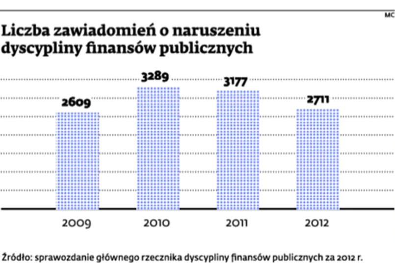 Bardziej szczegółowych informacji szukamy zatem u głównego rzecznika dyscypliny finansów publicznych. Z jego danych wynika, że ogólna liczba zawiadomień o naruszeniu dyscypliny finansów publicznych (w tym od RIO) w latach 2010–2012 spadła o niemal 18 proc. I tu pojawia się pytanie o powody tak znaczących spadków: kontrole stały się mniej wnikliwe czy może samorządowcy ostrożniej wydają publiczne pieniądze?