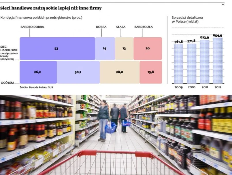 Aż 53 proc. sieci odzieżowych, obuwniczych, jubilerskich, kosmetycznych czy z materiałami budowlanymi jest w bardzo dobrej kondycji finansowej. Handel wyróżnia się na tle sytuacji firm ze wszystkich branż ogółem. W tym przypadku bowiem tylko 26 proc. firm ma bardzo dobrą sytuację finansową – wynika z raportu przygotowanego dla DGP przez wywiadownię gospodarczą Bisnode D&B Polska.