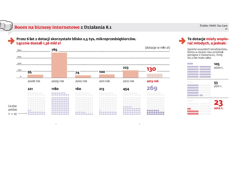 Ten bardziej chyba nawet innowacyjny niż sam serwis z ogłoszeniami pomysł na to, by i samemu zarobić, i by jeszcze inny przedsiębiorca zyskał, wcale nie jest odosobniony. Działanie 8.1 Programu Operacyjnego Innowacyjna Gospodarka miało zrewolucjonizować polską e-gospodarkę i spowodować powstanie setek nowych internetowych biznesów. Po czterech latach jego funkcjonowania niespecjalnie słychać o spektakularnych sukcesach. Zamiast tego coraz częściej pojawiają się takie właśnie ogłoszenia od beneficjentów odsprzedających interesy. Już rok temu alarmowaliśmy o podobnych działaniach, wtedy jednak dotacje próbowali odsprzedawać przedsiębiorcy, którzy uzyskali je w pierwszych naborach i często byli nieświadomi, że stworzenie e-usługi i rozliczenie jej z PARP wcale nie jest takie proste.