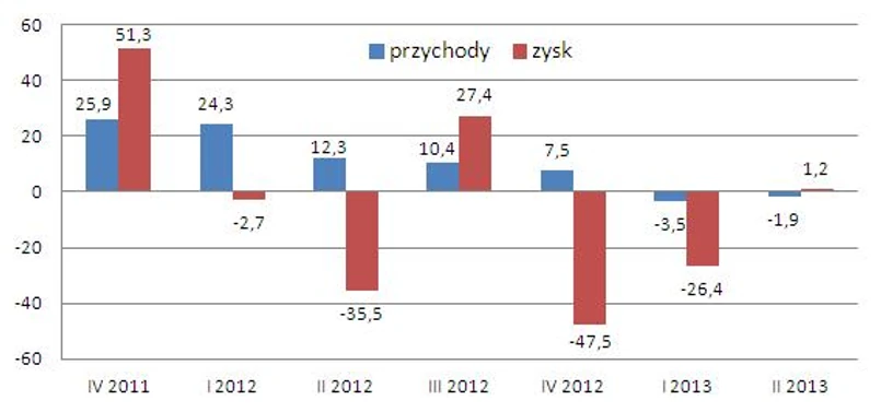 Nadal kiepska jest sytuacja Telekomunikacji Polskiej. Zysk w drugim kwartale był niższy niż przed rokiem o 70 proc. O 10 proc. zmniejszyły się także przychody ze sprzedaży, notując największy spadek od wielu kwartałów. Osiągnięcia spółki stanowiły negatywne zaskoczenie dla analityków. Rozczarowały także obie rafinerie. Dużo niższe niż przed rokiem były przychody ze sprzedaży Lotosu. Z kolei PKN mocno powiększył skalę strat (z 5 mln przed rokiem do 207 mln zł) i to mimo wyższych przychodów. Gdańska rafineria też pod tym względem nie zachwyciła. Choć strata była o trzy czwarte mniejsza niż w 2012 r., to i tak wyniosła 126 mln zł.