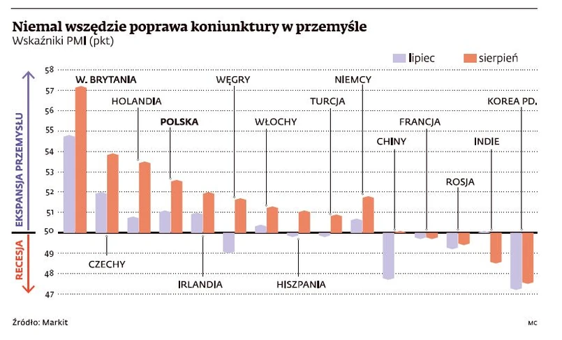 >>> Czytaj też: PMI Polski wzrósł w sierpniu o 1,5 pkt, po raz pierwszy od listopada 2011