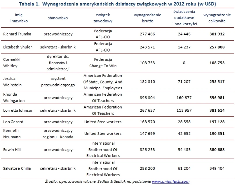 Jak wynika z tabeli 1 i 2 ujawnienie wysokości wynagrodzenia jest standardem bazującym na poczuciu obowiązku rozliczenia środków wobec członków. Ujawnianie wynagrodzeń nie jest również zagrożeniem wolności związkowej, bo jak uczy historia są to kraje w których związki mają silną pozycję.
