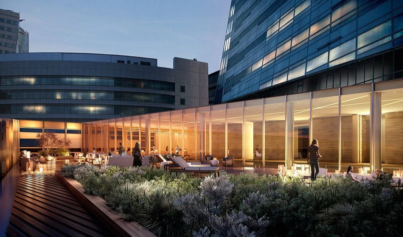 Obsługa portiera, consierge'a oraz cały personel budynku (np. obsługa techniczna) będą dostępni przez 24 godziny na dobę, a niektóre przykłady ekskluzywnych usług to: śniadanie do pokoju, lekcje pływania dla dzieci czy masaż. Mieszkańcy będą mogli też korzystać z wewnętrznego tarasu z jacuzzi i leżakami, pełnego kateringu do obsługi ewentualnych prywatnych przyjęć oraz sali konferencyjnej do spotkań biznesowych.