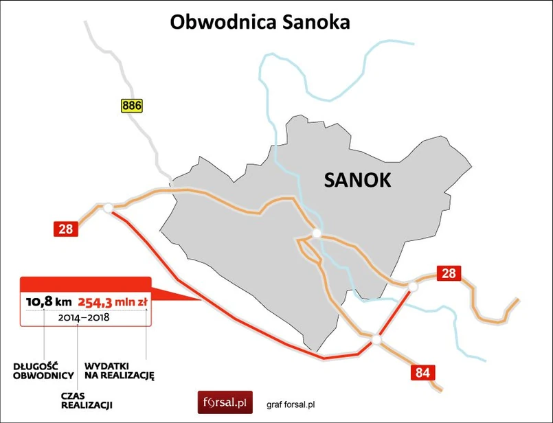 Obwodnica Sanoka powstanie wzdłuż drogi krajowej nr 28, a jej długość wyniesie 10,8 km.