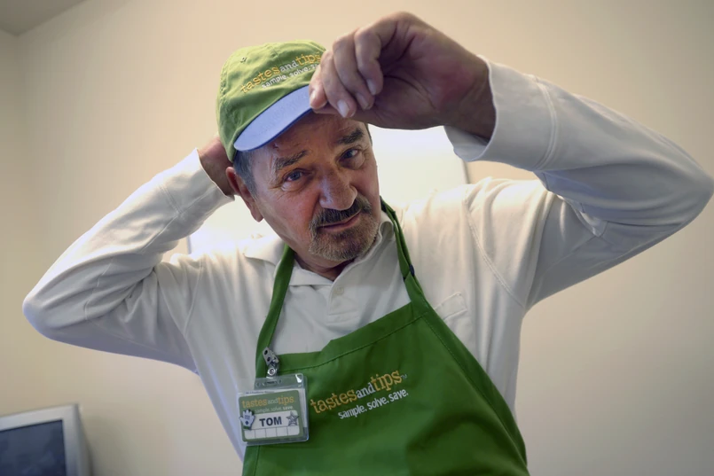 Tom Palome wykonuje prace na pół etatu – przy prezentacji jedzenia w Sam’s Club za 10 dolarów za godzinę oraz przy serwowaniu hamburgerów i napojów w klubie golfowym za nieco więcej niż wynosi średnia krajowa.