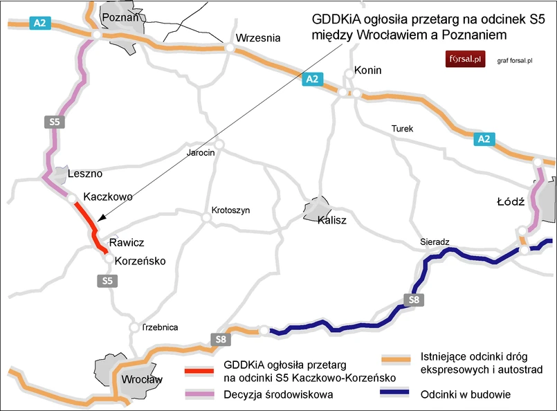 W komunikacie podano, że jeszcze w tym roku GDDKiA ogłosi kolejne postępowania przetargowe na budowę kolejnych brakujących fragmentów drogi ekspresowej S5 na odcinku Poznań – Wrocław. Jeden przetarg zostanie wszczęty na prawie 16-kilometrowy odcinek Głuchowo - Wronczyn, drugi na prawie 29-kilometrowy odcinek Radomicko - Kaczkowo.