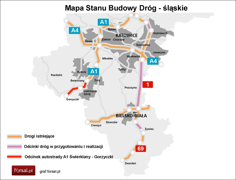 Przewidywany termin dopuszczenia do ruchu całego odcinka autostrady A1 Świerklany-Gorzyczki to I połowa 2014 r.
