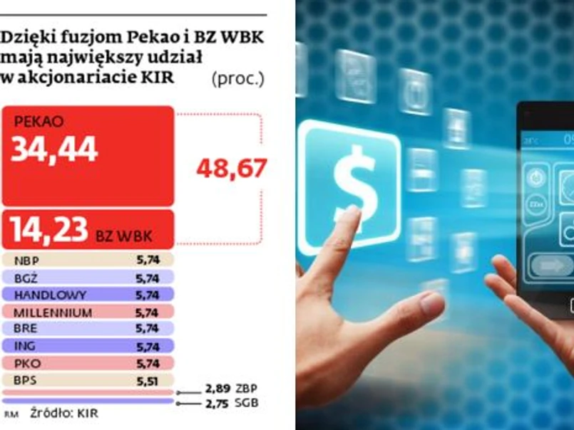 Udziałowcy KIR to kilkanaście instytucji finansowych, z czego większość to banki komercyjne. NBP ma niecałe 6 proc. akcji KIR, podobnie jak większość pozostałych udziałowców. Jednak dwóch z nich – Pekao oraz BZ WBK w wyniku dotychczasowych fuzji i przejęć mniejszych konkurentów, będących również udziałowcami w KIR, stało się największymi akcjonariuszami i mają odpowiednio 34,4 proc. oraz 14,2 proc. udziałów w tej spółce. Po odsprzedaży części swoich papierów bankowi centralnemu udziały każdego z nich mają spaść do 5,74 proc., czyli do poziomu, na jakim znajdują się udziały większości pozostałych komercyjnych banków.