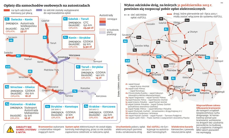 Od jutra przybędzie 340 km płatnych dróg ekspresowych i autostrad. W grudniu kolejnych 120 km. Osoby związane z branżą drogową szacują, że tylko dzięki październikowemu rozszerzeniu wpływy do Krajowego Funduszu Drogowego z tytułu opłat drogowych mogą się zwiększyć o 10–12 mln zł miesięcznie. Od lipca 2011 r. do końca września 2013 r. system zarobił ok. 2,2 mld zł. W sumie do końca 2018 r. kosztujący niemal 5 mld zł projekt viaTOLL ma wygenerować 12 mld zł przychodu.
