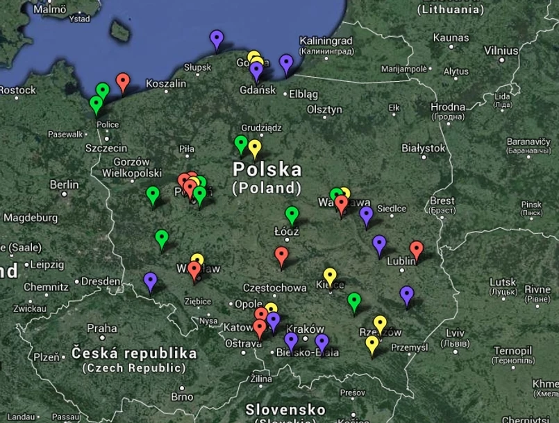 Fioletowe - gminy miejskie