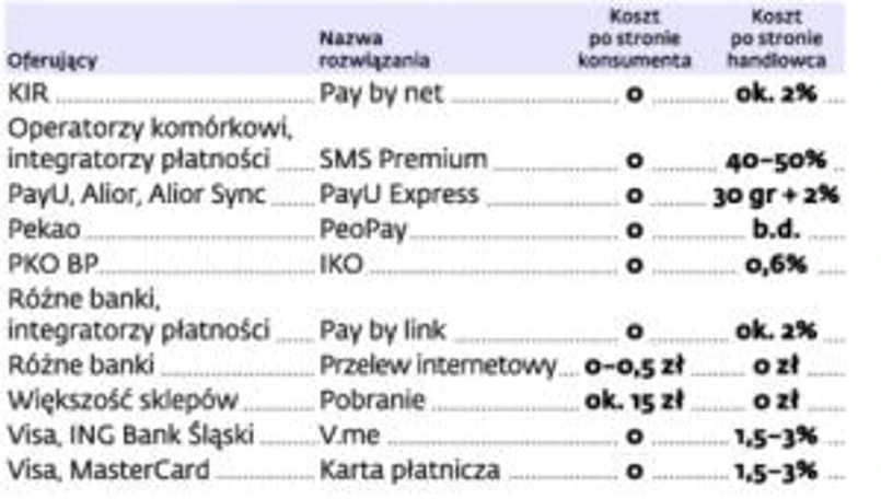 Te nowości w segmencie internetowych transakcji będą konkurować z dobrze znanymi już przelewami pay by link, oferowanymi przez integratorów płatności. Koszt ich usług jest porównywalny z prowizjami związanymi z transakcjami kartowymi – obecnie to między 1,5 a 3 proc. Obie metody mają jednak swoje wady: wymagają wprowadzania każdorazowo wielu danych, co zabiera czas i komplikuje proces zakupowy. – To ważne, by realizacja transakcji była maksymalnie prosta i szybka. Od tego często zależy, czy zakup zostanie sfinalizowany – uważa Wojciech Czajkowski, dyrektor zarządzający PayU. Eksperci podkreślają, że porzucony koszyk, czyli przerwanie przez klienta zakupów z powodu niemożności dokonania szybkiej zapłaty, jest dziś dużą bolączką właścicieli sklepów internetowych.