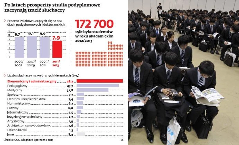 Tymczasem takich typów studiów może być nawet kilka tysięcy, na których uczy się ponad 185 tys. osób. Są wśród nich takie, które powstają w związku z przepisami wprowadzającymi nowe zawody. Tak było w przypadku superwizora, a wcześniej asystenta rodziny. Również wtedy szkoły próbowały wyjść przed szereg. Ramy kwalifikacji resort pracy określił w grudniu 2011 r., ale oferta takich studiów była w kilku łódzkich szkołach już kilka miesięcy wcześniej. I choć nie jest to zabronione, w takiej sytuacji mylna może być nazwa kierunku, sugerująca, że daje on uprawnienia do wykonywania zawodu.