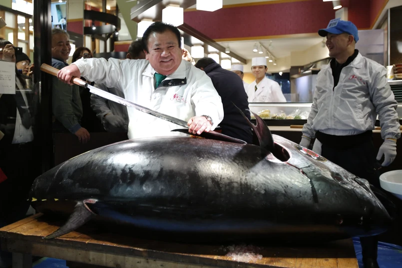 Na tegorocznej aukcji został pobity zeszłoroczny rekord, kiedy na sprzedaż wystawiono tuńczyka błękitnopłetwego o wadze 222 kilogramów. Na pierwszej aukcji tuńczyka w 2014 roku sprzedano w sumie 1729 tych ryb. W tym roku można je było kupić znacznie taniej - kilogram kosztował przeciętnie 32 tysiące jenów (w zeszłym roku - 700 tysięcy jenów). "Cieszę się, że ceny wróciły do racjonalnego poziomu" - skomentował Kijoszi Kimura, zwycięzca tegorocznej aukcji.