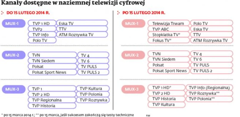 TVP wychodząc z MUX-1, musiałaby zrezygnować z nadawania części programów. Na trzecim multipleksie mieści się osiem programów nadawanych w standardowej rozdzielczości. TVP chce jednak, by widzowie mieli dostęp do głównych programów TVP 1 i TVP 2 w wersji HD. W ten sposób zagospodaruje cztery kanały. Pozostałe zajmą: TVP Info, programy regionalne, TVP Kultura i TVP Historia. Od 15 lutego nie będzie miejsca dla TVP Polonia i TVP Rozrywka. Spółka próbuje temu zaradzić, testując technologię pozwalającą na większą kompresję sygnału.