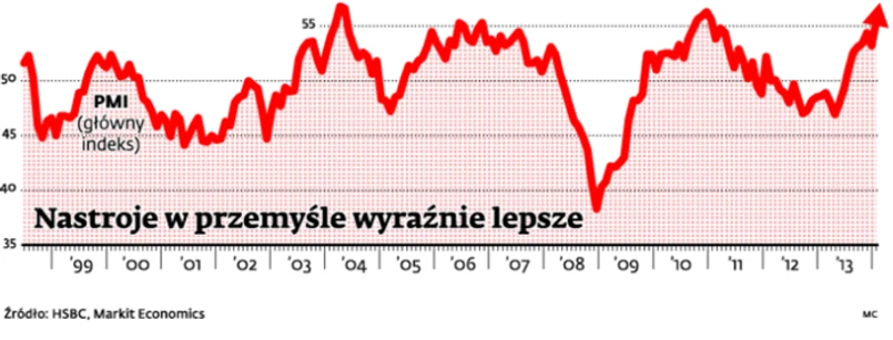 Polski PMI (>>> Czytaj więcej) który pokazuje, jak menedżerowie w przemyśle postrzegają kondycję swoich firm, w styczniu wyniósł 55,4 pkt. Z danych zebranych przez Markit Economics wynika, że rodzime firmy coraz mocniej wierzą w poprawę koniunktury. Dowód?
