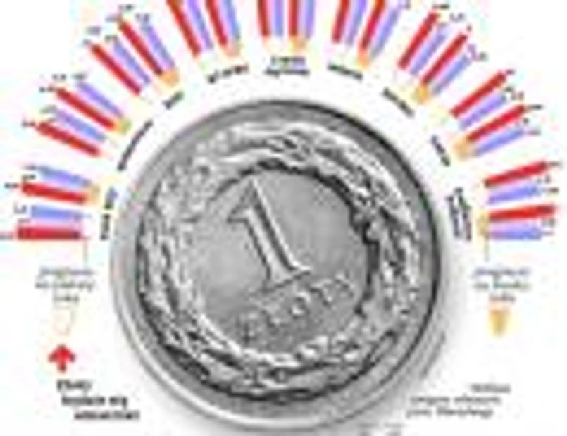 Drugą przyczyną siły złotego jest fakt, że rząd coraz częściej będzie mógł się chwalić przed inwestorami coraz lepszą sytuacją w finansach publicznych. Pierwsze sygnały to nieporównywalnie mniejszy od planowanego deficyt samorządów w ubiegłym roku. Wyniósł on niecałe 55 mln zł, a planowano, że przekroczy aż 8,8 mld zł. To daje podstawy, by sądzić, że dziura w finansach już w ubiegłym roku była mniejsza, niż szacowała to Komisja Europejska (4,8 proc. PKB). W tym roku dodatkowo wynik systemu poprawi się dzięki przeniesieniu ponad połowy aktywów OFE do ZUS. Ale nie tylko. Eksperci uważają, że tegoroczny deficyt budżetowy został zaplanowany z dużym zapasem i w rzeczywistości będzie nawet o ok. 5 mld zł mniejszy niż 47,5 mld zł zapisane w ustawie. Pierwszy symptom to dane o wykonaniu budżetu za styczeń (ponad 24-proc. wzrost wpływów z VAT, deficyt na poziomie 2,6 mld zł w porównaniu z 8,5 mld zł przed rokiem).