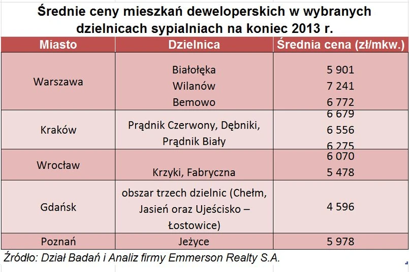 Średnie ceny mieszkań deweloperskich w poszczególnych dzielnicach sypialniach są bardzo zróżnicowane i uzależnione od wielu czynników takich jak dostępność komunikacyjna, charakter zabudowy, itd. Należy mieć także świadomość, iż w każdej dzielnicy można wskazać przykłady wyraźnie lepszych i gorszych lokalizacji.