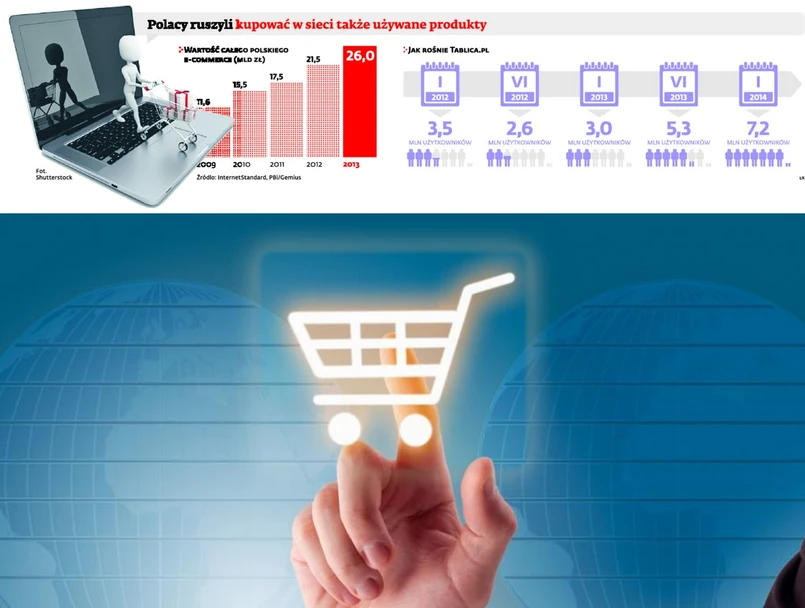 Ponad 7 mln użytkowników ma do niedawna uznawany za niszowy portal Tablica.pl, w którym można sprzedawać i kupować używane meble, ubrania, artykuły dla dzieci, zwierząt, elektronikę i wszystko inne, co tylko przyjdzie ludziom do głowy. Ponad 2 mln osób korzysta co miesiąc z serwisu Sprzedajemy.pl, na którym także można szukać produktów z drugiej ręki. Takich mniejszych i większych internetowych second-handów czy po prostu targów staroci jest już w polskiej sieci około 300 i wszystko wskazuje na to, że mają przed sobą przyszłość.