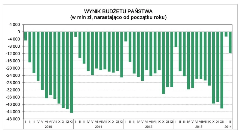 Prezentując w ub. tygodniu wstępne dane za luty resort podał, że deficyt wyniósł właśnie 11,73 mld zł deficytu (czyli 24,7 proc. planu przewidzianego w ustawie budżetowej na cały rok, wynoszącego 47,51 mld zł).