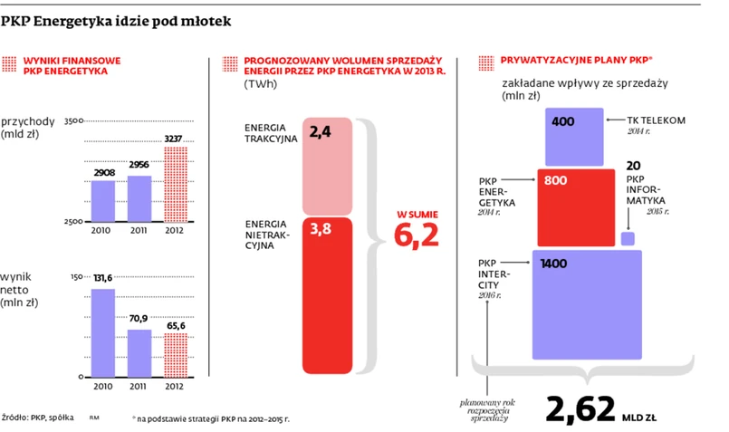 Zgodnie z ustawą o komercjalizacji, restrukturyzacji i prywatyzacji PKP wszystkie środki ze sprzedaży udziałów w spółkach zależnych tej grupy muszą być przeznaczone na spłatę zadłużenia. To dwa lata temu wynosiło ponad 4 mld zł. Dzisiaj – dzięki prywatyzacjom PKP Cargo i Polskich Kolei Linowych – spadło do nieco ponad 3 mld zł. W 2014 r. Grupa PKP musi spłacić zadłużenie o wartości 1,5 mld zł. Dla PKP Energetyki może się nie udać znaleźć nabywcy do końca roku, ale PKP twierdzą, że środki na spłatę na ten rok mają w większości zabezpieczone z GPW i wpływów ze sprzedaży nieruchomości (te to ok. 200 mln zł rocznie). A jeśli prywatyzacyjny pociąg PKP wypadnie z szyn? – Wtedy możemy rolować zadłużenie. Mamy rating BBB od agencji Fitch, więc nie będziemy mieć problemów – twierdzą PKP.