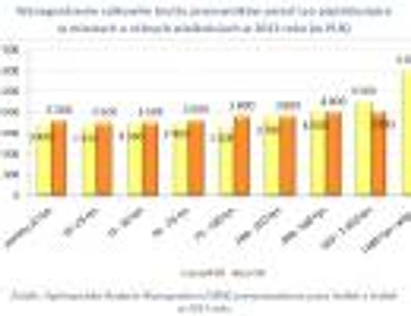 Jeszcze większa dysproporcja w zarobkach pomiędzy najstarszą grupą wiekową, a grupami poniżej „50” występuje u 25 proc. najlepiej zarabiających osób. Mediana wynagrodzeń dla najstarszych wynosi 6000 zł brutto, natomiast wartość dla młodszych grup wiekowych to 6800 zł brutto, czyli aż o 12 proc. więcej.