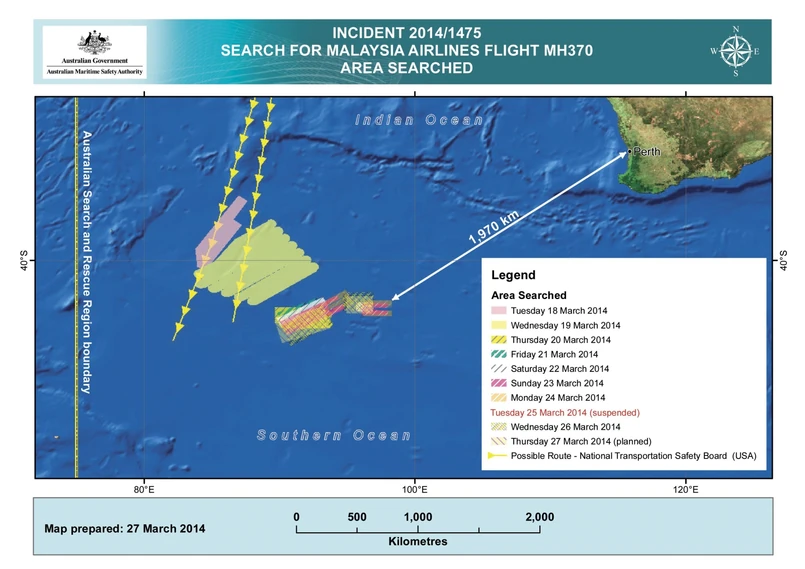 Dziś w rejonie poszukiwań, 2500 km od wybrzeży Australii, ponownie doszło do załamania pogody. Istnieje obawa, że wysokie fale rozniosą po jeszcze większym obszarze domniemane szczątki maszyny. W operacji wykorzystany zostanie amerykański sprzęt do poszukiwań czarnych skrzynek.