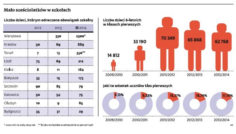 W Krakowie odroczenie uzyskał prawie co piąty 6-latek. Ponad setka stoi w kolejce do poradni. W Warszawie nawet co piąte dziecko może mieć taką opinię. W poprzednich latach dotyczyło to w obu miastach ok. 1–2 proc. przyszłych uczniów.