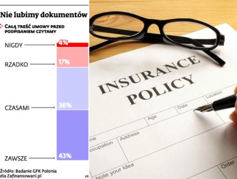 Problem w tym, że klient, który dostanie mało informacji, nie dowie się o zagrożeniach, które na niego czyhają. A umowy raczej nie przeczyta. Badanie TNS dla Komisji Nadzoru Finansowego, przeprowadzone w grudniu zeszłego roku, pokazało, że 40 proc. klientów towarzystw ubezpieczeniowych nie czyta przed zakupem polisy ani umowy, ani ogólnych warunków ubezpieczenia.