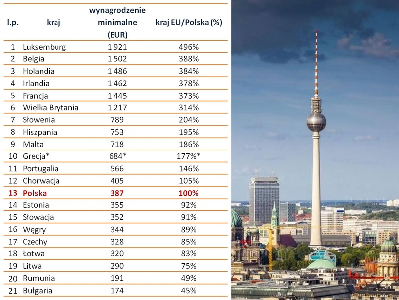 Niemcy są już 22. państwem Unii Europejskiej, które wprowadza płacę minimalną. Według danych Sedlak & Sedlak najwyższe minimalne wynagrodzenie otrzymują pracownicy zatrudnieni w Luksemburgu, Belgii i Holandii. Najniższe minimum płacowe obowiązuje w Bułgarii i Rumunii. Odpowiednio jest to 45 proc. i 49 proc. polskiego najniższego wynagrodzenia.