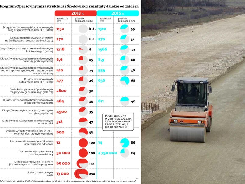 Kolei broni też resort infrastruktury i rozwoju. – W przypadku modernizacji linii kolejowych miała miejsce korekta wskaźnika POIiŚ wynikająca z metodologii jego liczenia. Do poprzedniej wartości oprócz modernizacji linii włączano też liczbę kilometrów linii, na której zainstalowany został system sterowania ERTMS. W celu uniknięcia sytuacji, w której dany odcinek linii kolejowej byłby liczony dwukrotnie, obecnie liczony wskaźnik obejmuje liczbę linii, na których prowadzone są prace budowlane – tłumaczy Piotr Popa, rzecznik MIR.