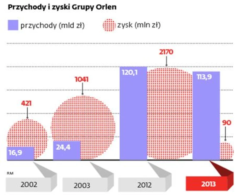 Monika Kalwasińska wskazuje jednak także na pewnego rodzaju zaniedbania szefostwa płockiego koncernu. – Orlen trochę przespał czas dobrej koniunktury, który pozwalał zróżnicować biznes. W latach 2004–2008 marże rafineryjne były na znacznie wyższym poziomie niż teraz i pozwalały na generowanie gotówki. Był to dobry czas na podejmowanie działań w kierunku dywersyfikacji działalności. Gdyby wtedy zaczęto inwestować np. w upstream, dziś Orlen byłby już na zupełnie innym etapie rozwoju – pointuje sytuację koncernu.