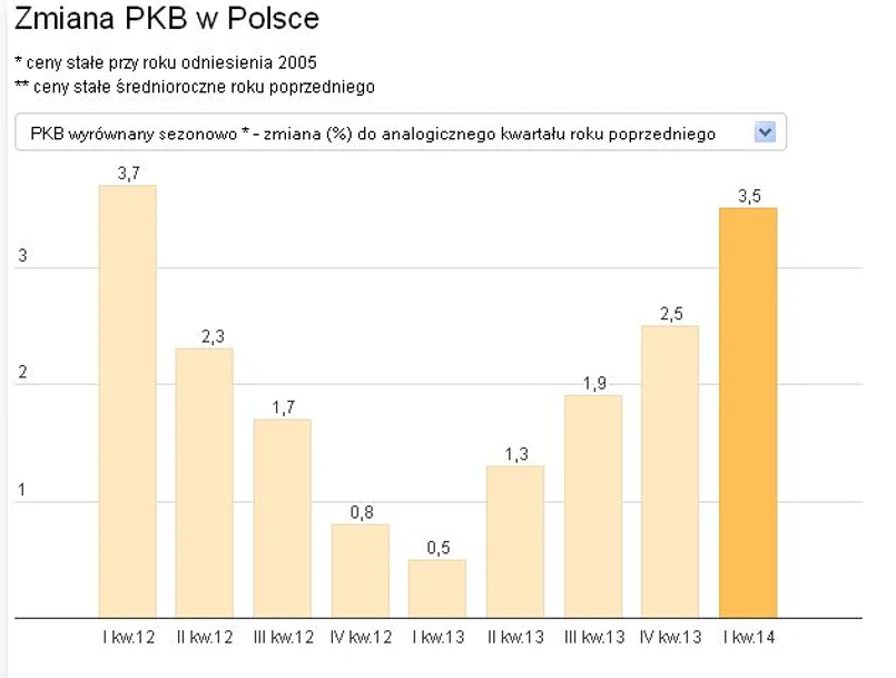 Wstępne dane o polskiej gospodarce podał dziś Główny Urząd Statystyczny. Wynik – 3,3 proc. wzrostu - jest nieco powyżej oczekiwań ekonomistów, którzy spodziewali się go na poziomie 3-3,2 proc. Eksperci wskazywali m.in. na odbudowujący się popyt krajowy, napędzany przede wszystkim konsumpcją (co sugerowały dane o rosnącej sprzedaży detalicznej) i inwestycyjnym odbiciem (bo wzrosła m.in. wartość kredytów udzielanych firmom na inwestycje).